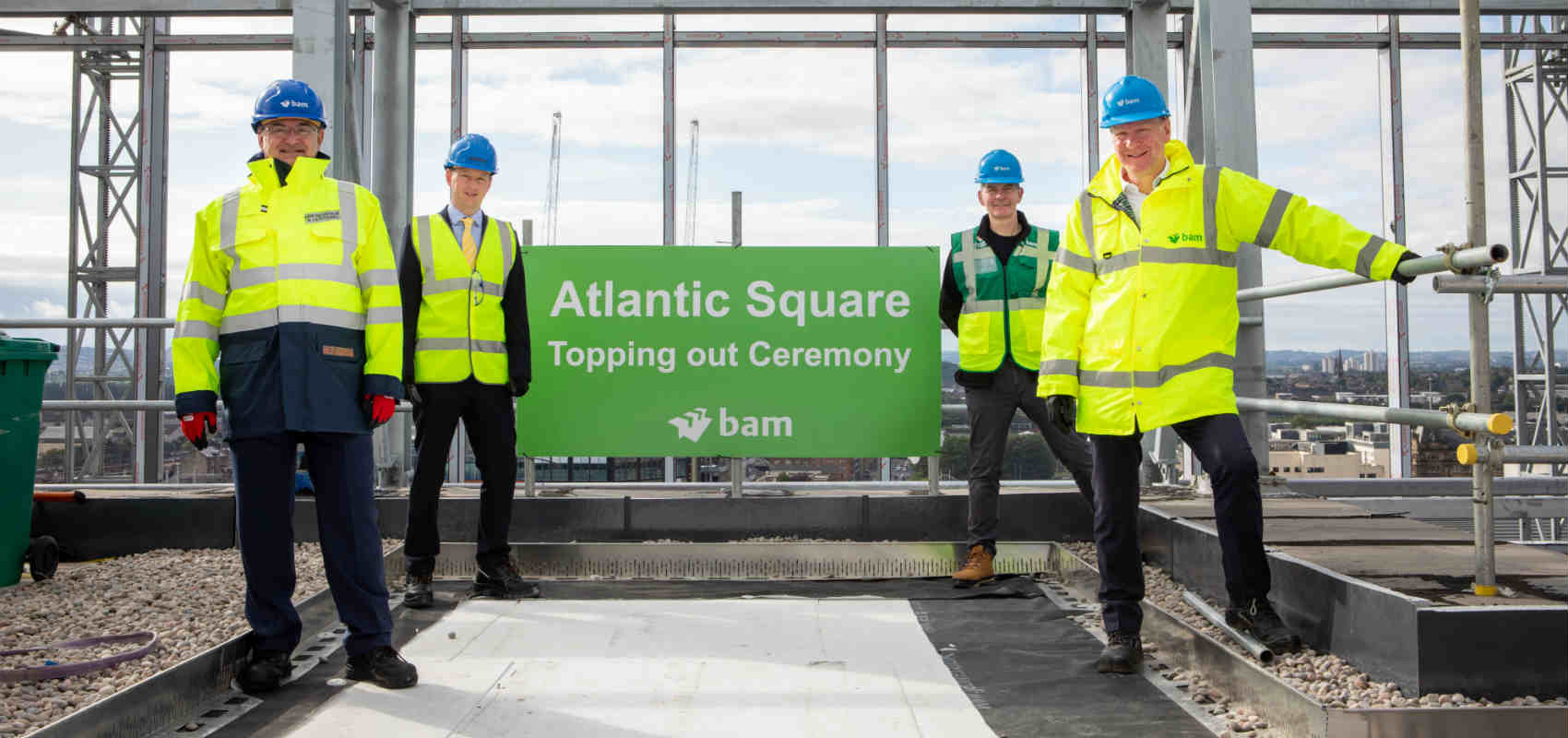Atlantic Square, a £150 million scheme comprising three buildings that will initially house 2700 employees for the HMRC, reached its highest point of construction.